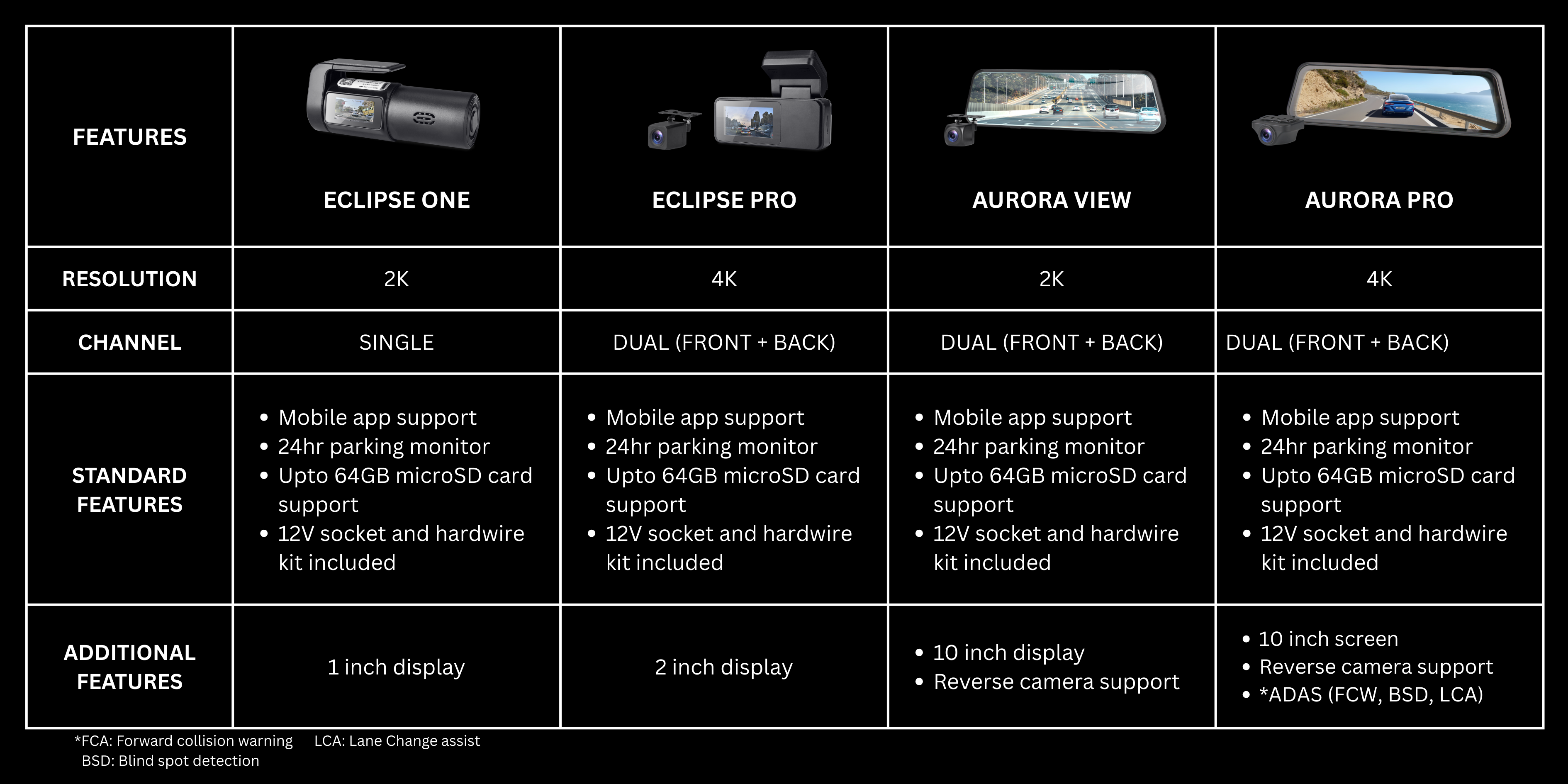 Mounted seamlessly over your rearview mirror, Aurora Pro transforms your vehicle into a smarter, safer, and more aware machine — capturing every angle while actively assisting you on the road.
